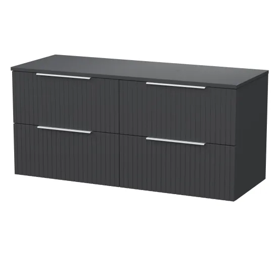 nuie Lux Flume 600mm 2- Drawer Wall Hung Unit with Furniture Worktop - Soft Black