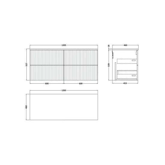 Flume 600mm 2- Drawer Wall Hung Unit with Furniture Worktop