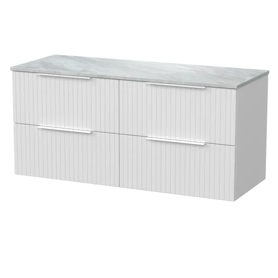 nuie Lux Flume 600mm 2- Drawer Wall Hung Unit with Grey Marble Top - Matt White