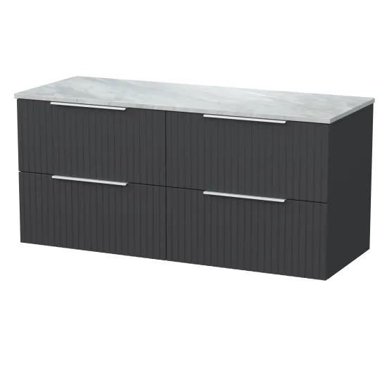Flume 600mm 2- Drawer Wall Hung Unit with Grey Marble Top