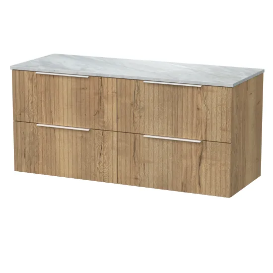 nuie Lux Flume 600mm 2- Drawer Wall Hung Unit with Grey Marble Top - Autumn Oak