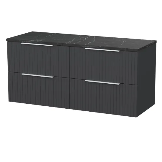 nuie Lux Flume 600mm 2- Drawer Wall Hung Unit with Laminate Worktop - Soft Black