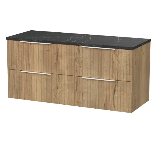 nuie Lux Flume 600mm 2- Drawer Wall Hung Unit with Laminate Worktop - Autumn Oak