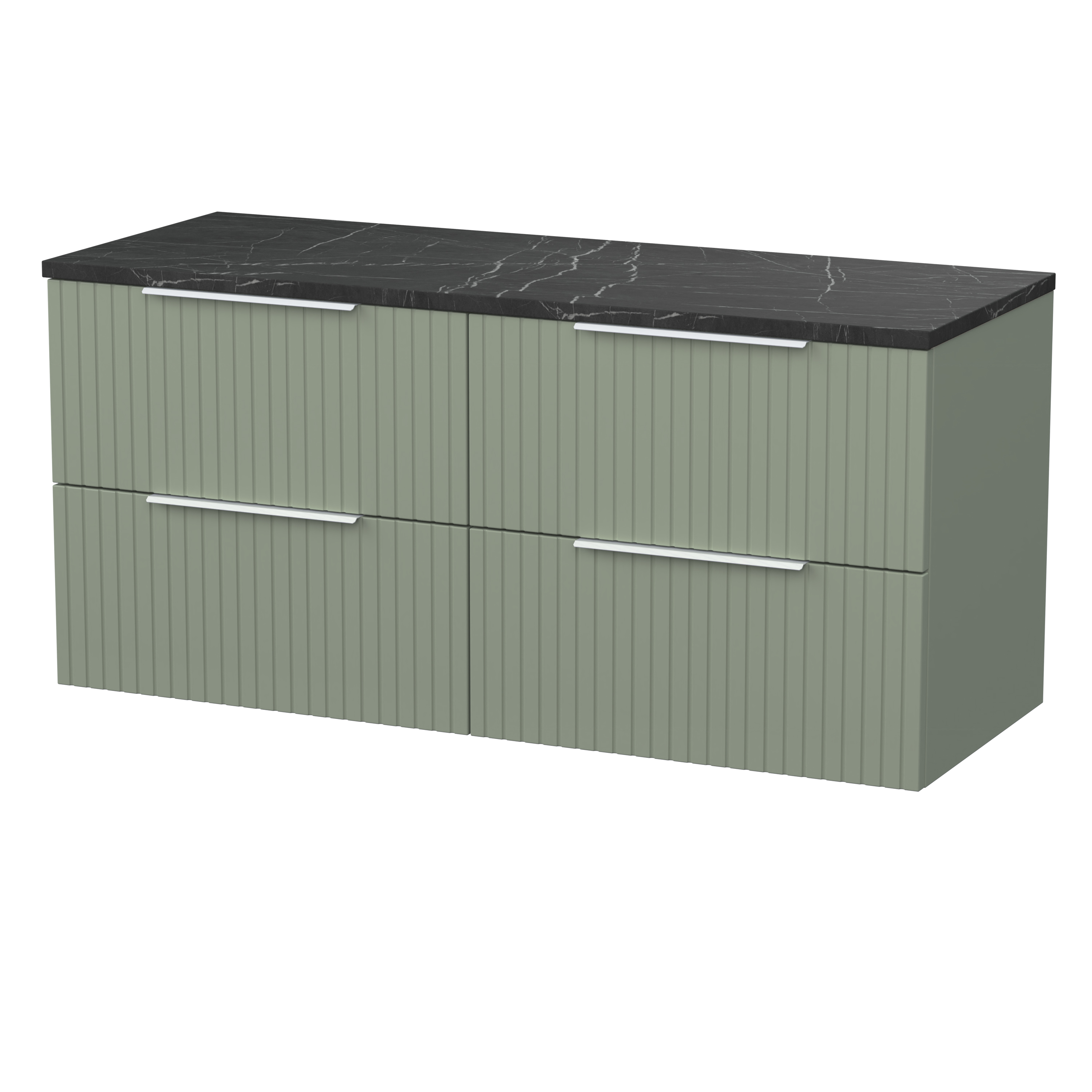 nuie Lux Flume 600mm 2- Drawer Wall Hung Unit with Laminate Worktop - Fern Green
