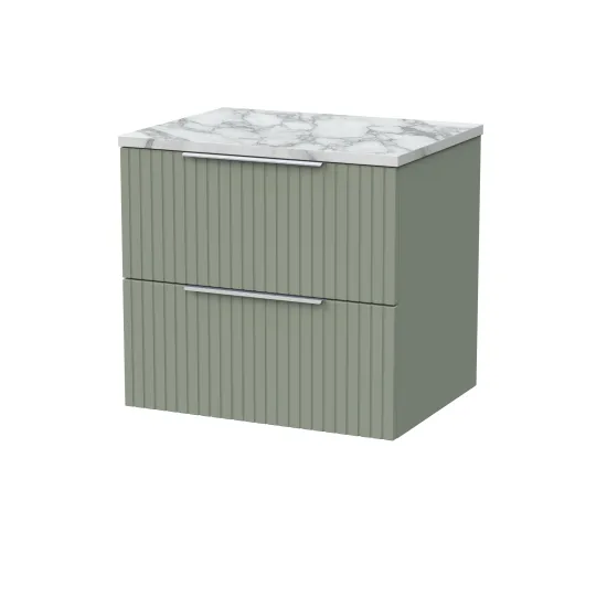 nuie Lux Flume 600mm 2- Drawer Wall Hung Unit with Laminate Worktop - Fern Green