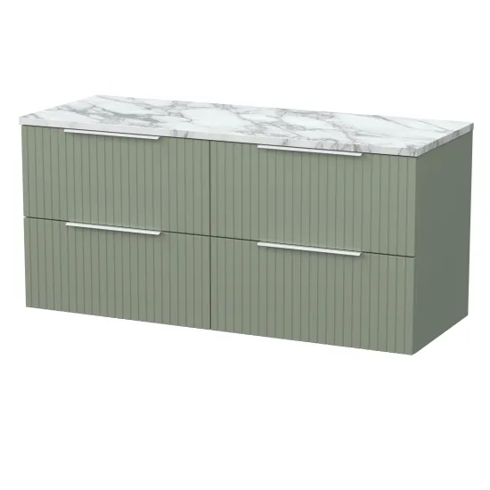 nuie Lux Flume 600mm 2- Drawer Wall Hung Unit with Laminate Worktop - Fern Green