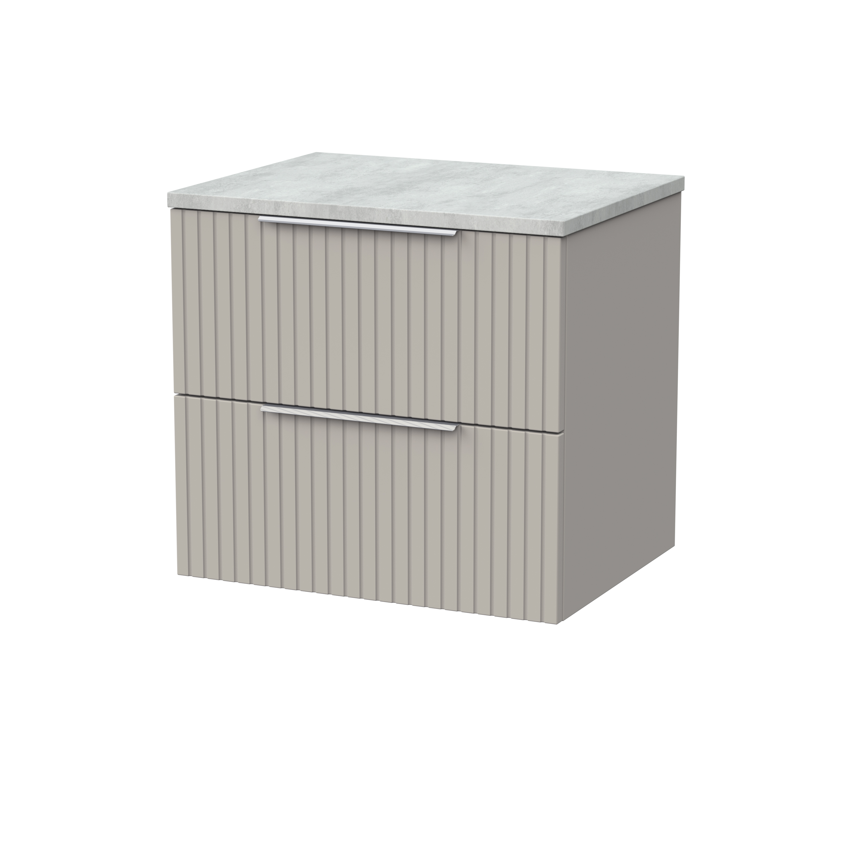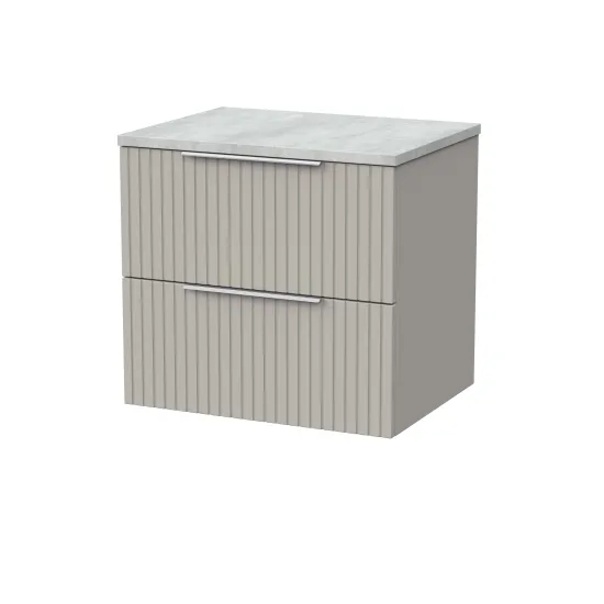 nuie Lux Flume 600mm 2- Drawer Wall Hung Unit with Laminate Worktop - Pebble Grey