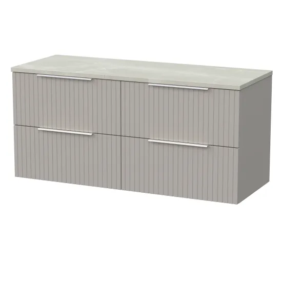 nuie Lux Flume 600mm 2- Drawer Wall Hung Unit with Laminate Worktop - Pebble Grey
