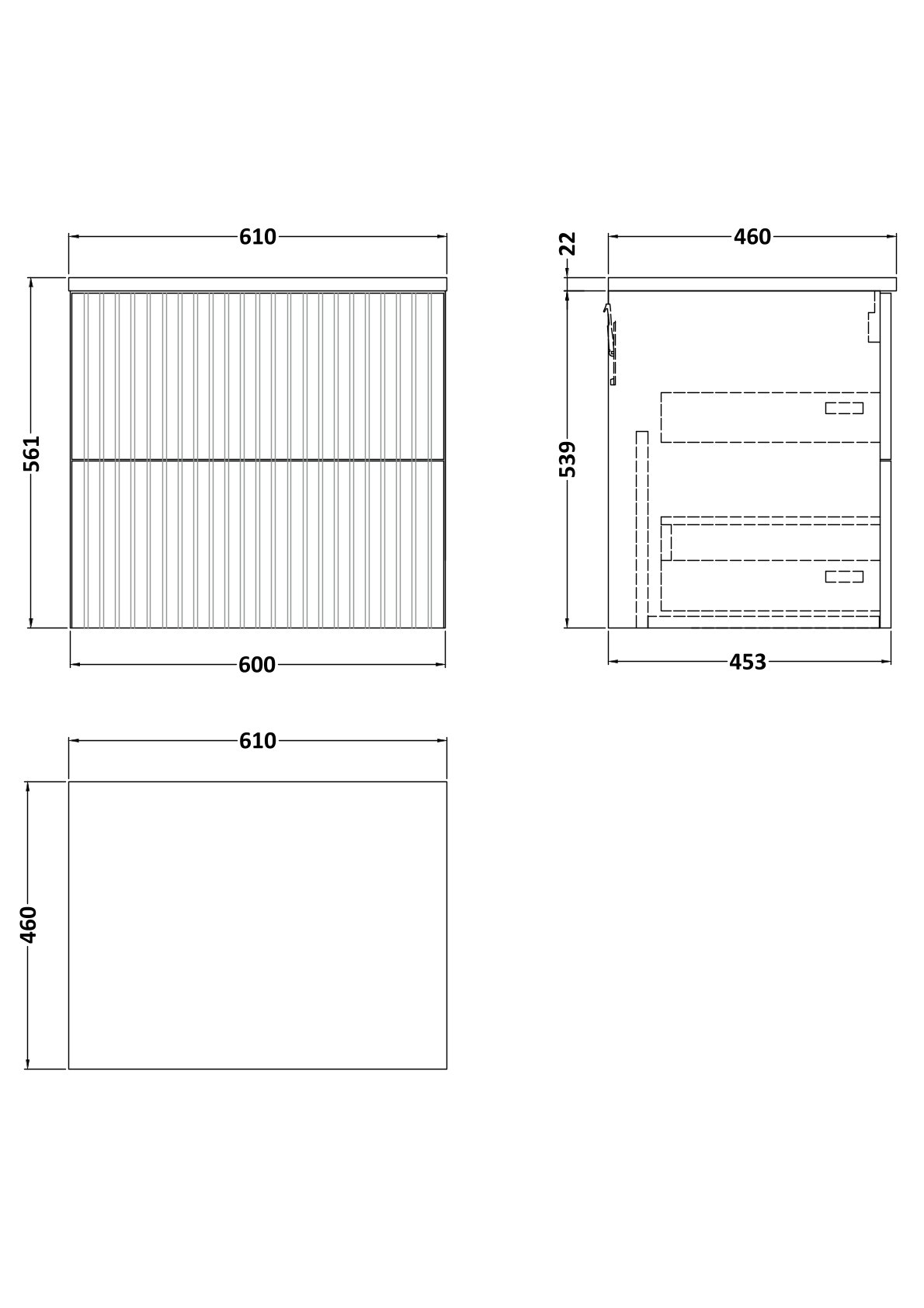 Flume 600mm 2- Drawer Wall Hung Unit with Laminate Worktop