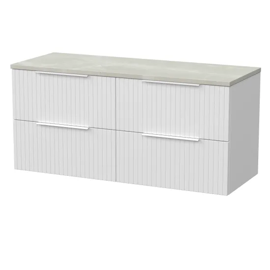 nuie Lux Flume 600mm 2- Drawer Wall Hung Unit with Laminate Worktop - Matt White