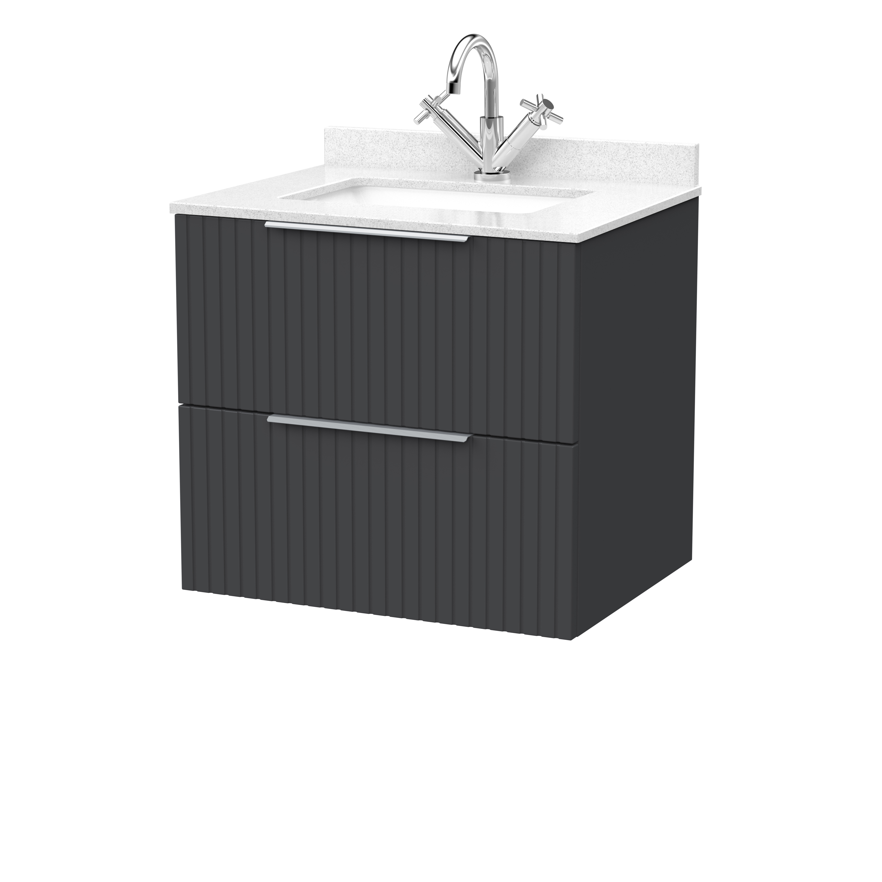 nuie Lux Flume 600mm 2- Drawer Wall Hung Unit with Single Bowl Marble Top 1 Tap Hole in White - Soft Black