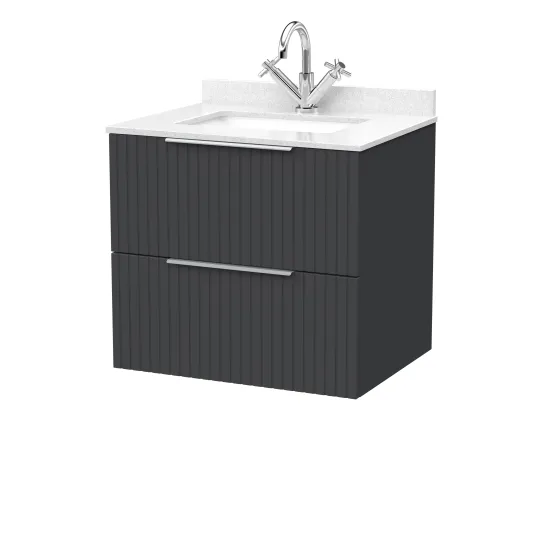 Flume 600mm 2- Drawer Wall Hung Unit with Single Bowl Marble Top 1 Tap Hole in White