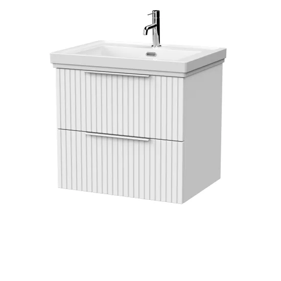 nuie Lux Flume 600mm 2- Drawer Wall Hung Unit with Traditional Fireclay Basin - 1 Tap Hole - Matt White