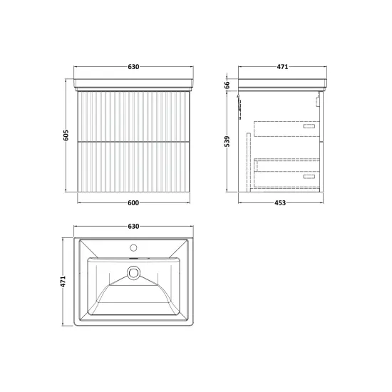 Flume 600mm 2- Drawer Wall Hung Unit with Traditional Fireclay Basin - 1 Tap Hole