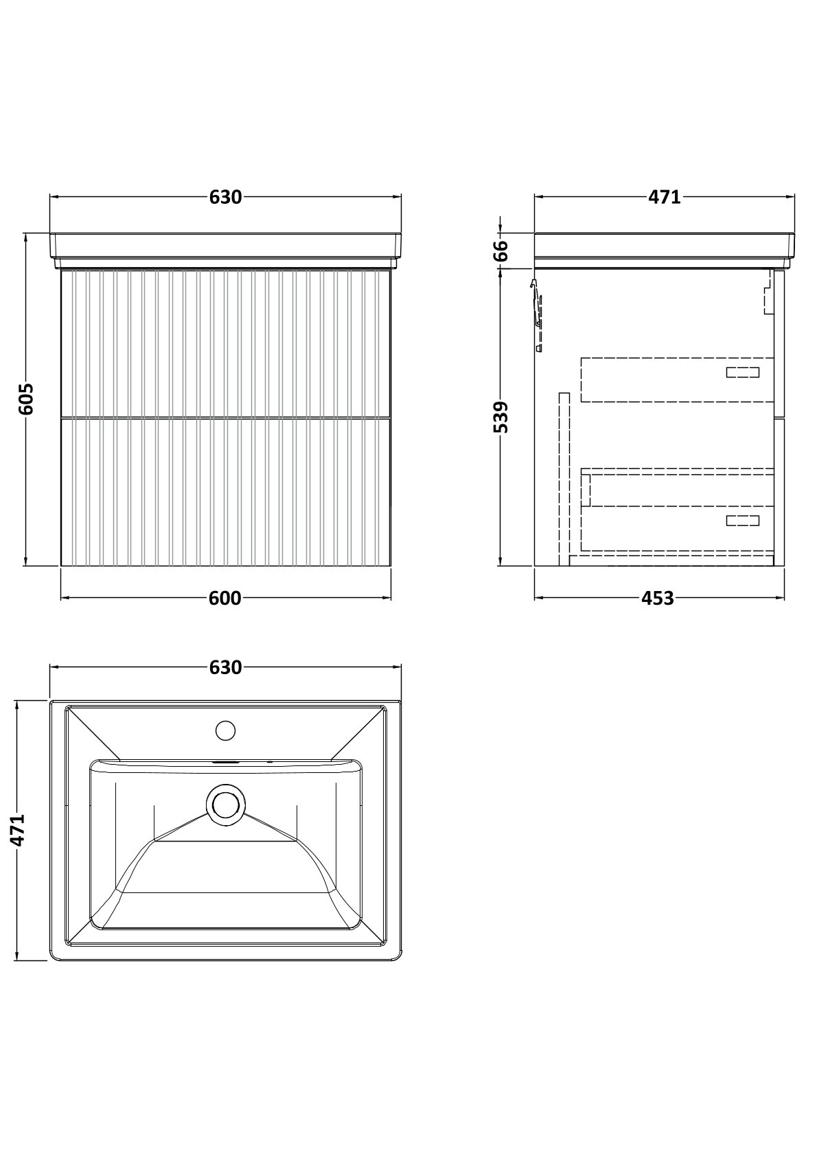Flume 600mm 2- Drawer Wall Hung Unit with Traditional Fireclay Basin - 1 Tap Hole