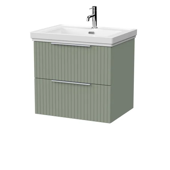 nuie Lux Flume 600mm 2- Drawer Wall Hung Unit with Traditional Fireclay Basin - 1 Tap Hole - Fern Green