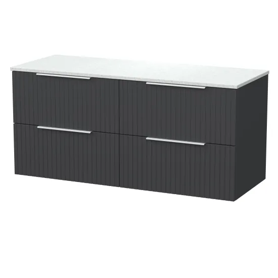 nuie Lux Flume 600mm 2- Drawer Wall Hung Unit with White Marble Top - Soft Black