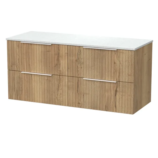 nuie Lux Flume 600mm 2- Drawer Wall Hung Unit with White Marble Top - Autumn Oak