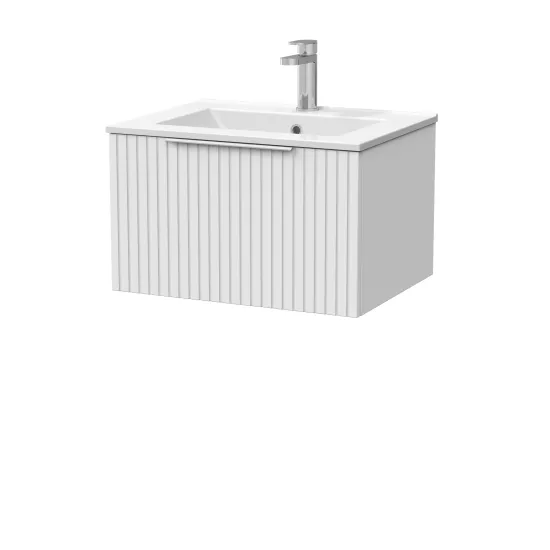 nuie Lux Flume 600mm Single Drawer Wall Hung Unit with 1 Tap Hole Minimalist Basin Top - Matt White