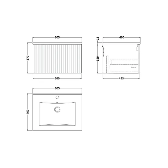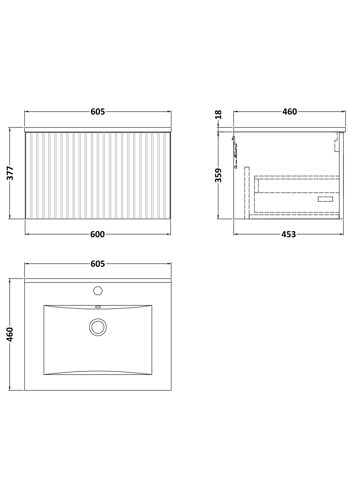 Flume 600mm Single Drawer Wall Hung Unit with 1 Tap Hole Minimalist Basin Top