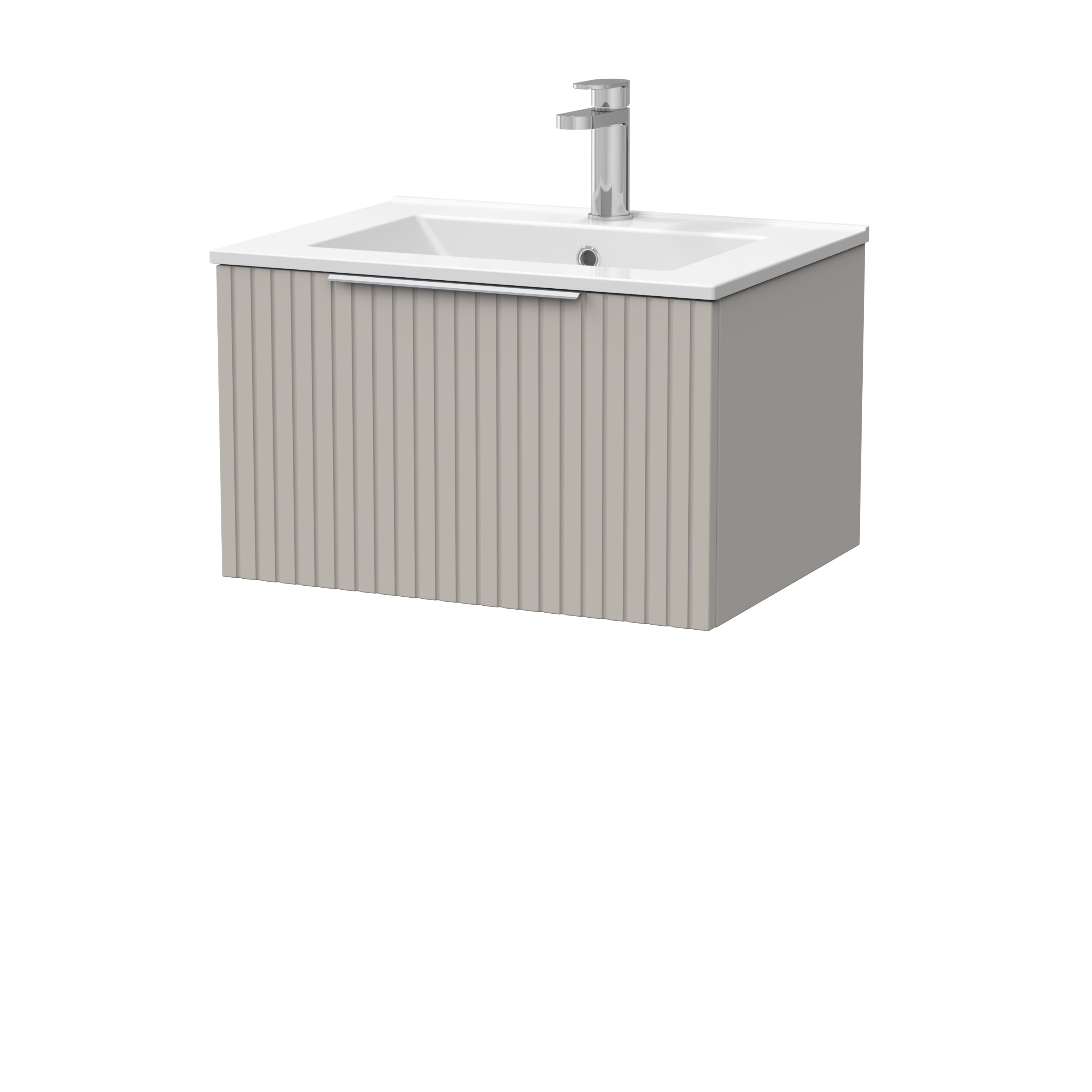nuie Lux Flume 600mm Single Drawer Wall Hung Unit with 1 Tap Hole Minimalist Basin Top - Pebble Grey