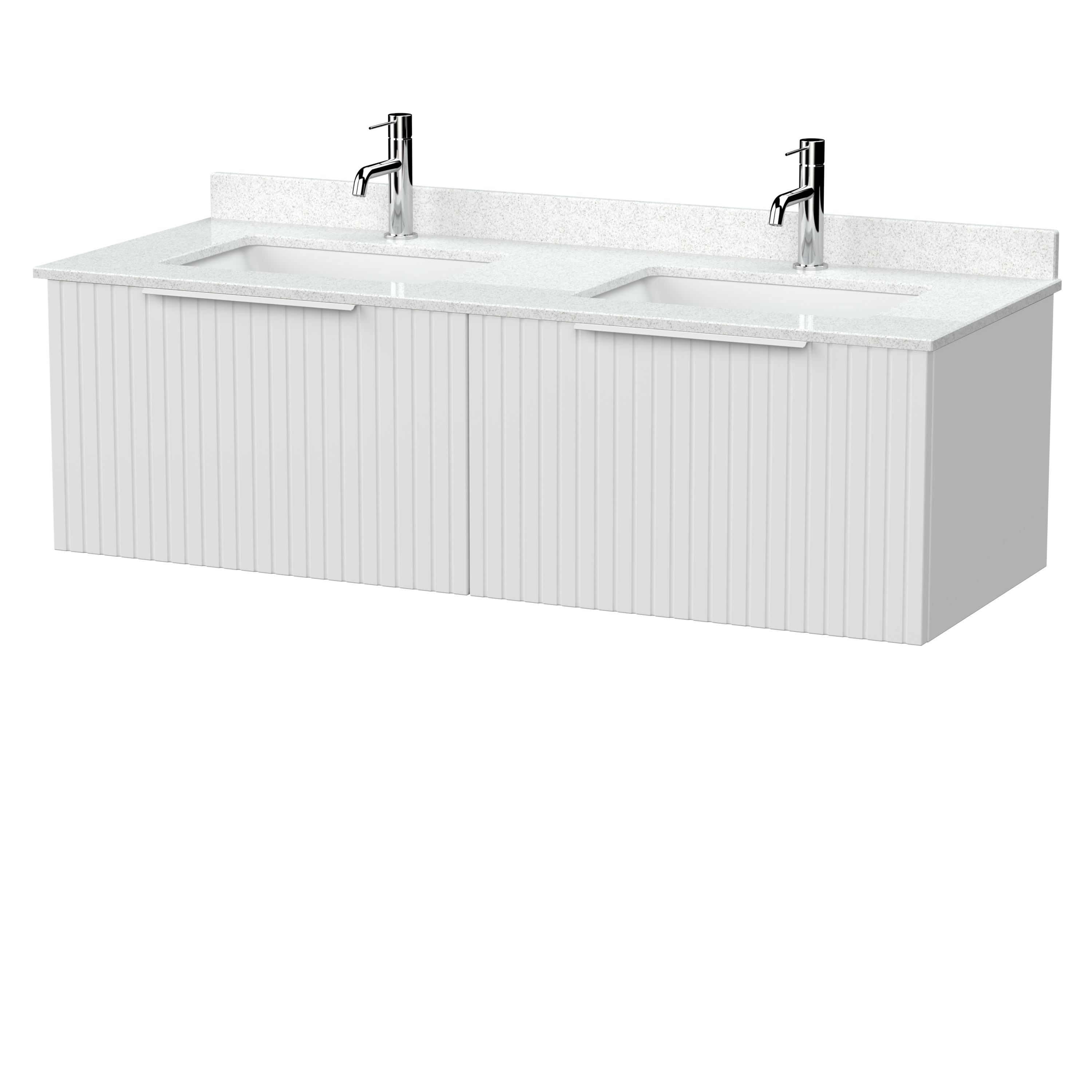 nuie Lux Flume 600mm Single Drawer Wall Hung Unit with Double Bowl Marble Top 1 Tap Hole in White - Matt White
