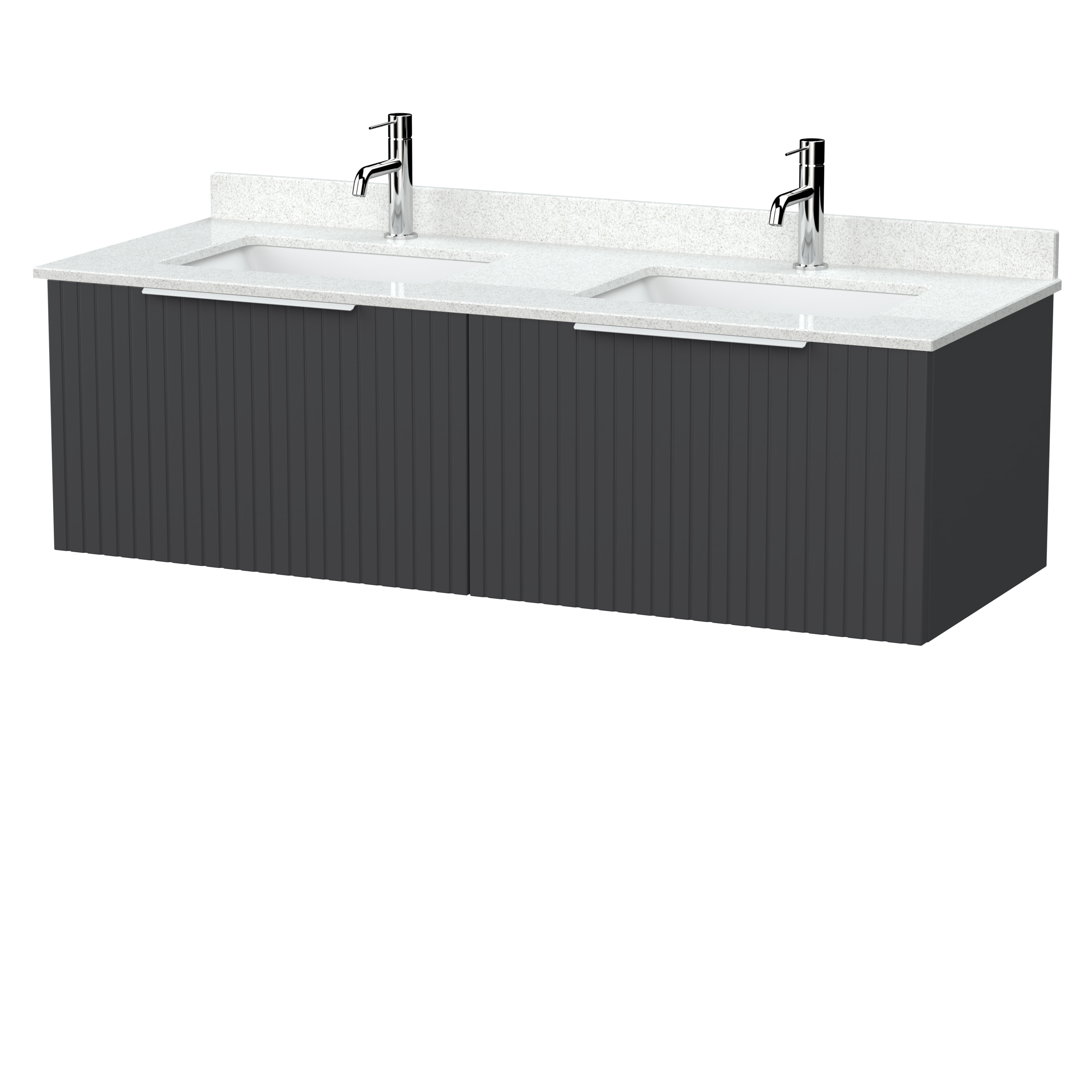 nuie Lux Flume 600mm Single Drawer Wall Hung Unit with Double Bowl Marble Top 1 Tap Hole in White - Soft Black