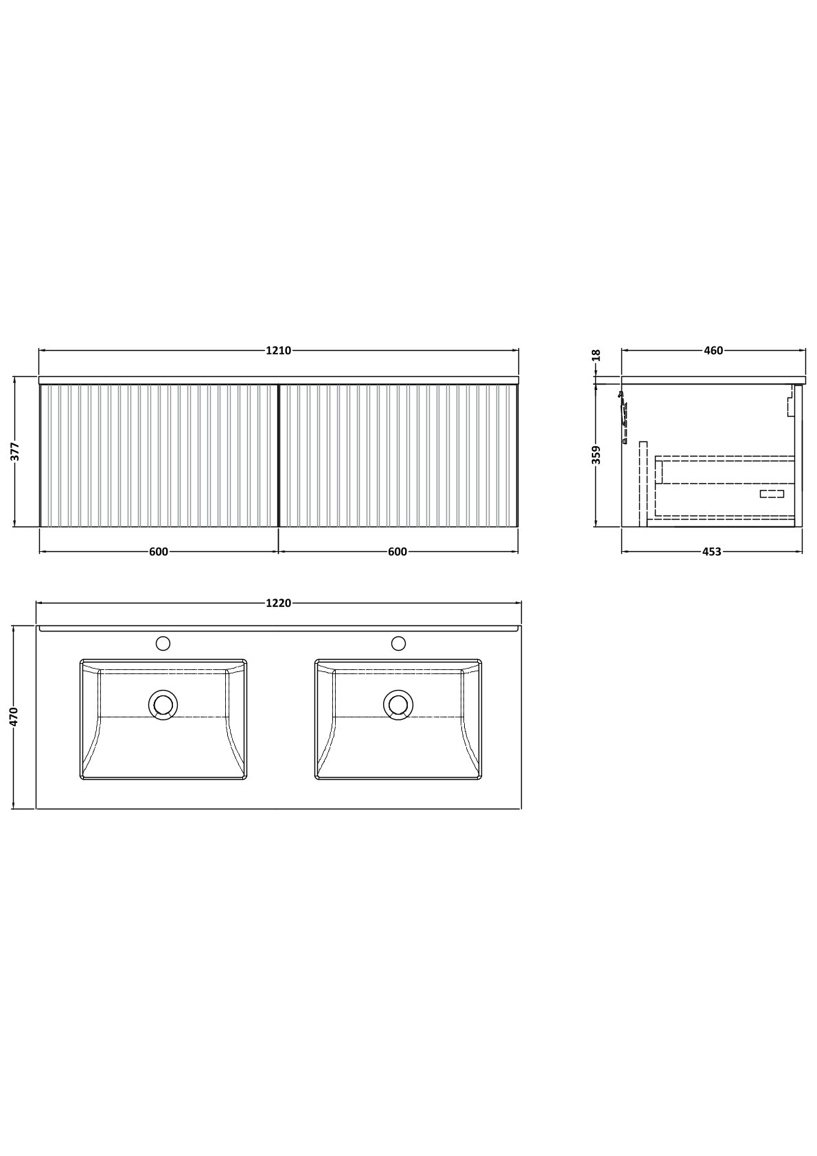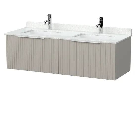 nuie Lux Flume 600mm Single Drawer Wall Hung Unit with Double Bowl Marble Top 1 Tap Hole in White - Pebble Grey