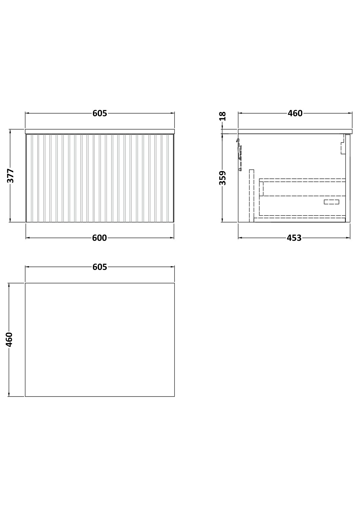 Flume 600mm Single Drawer Wall Hung Unit with Furniture Worktop
