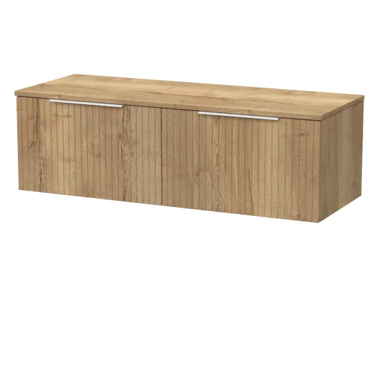 nuie Lux Flume 600mm Single Drawer Wall Hung Unit with Furniture Worktop - Autumn Oak