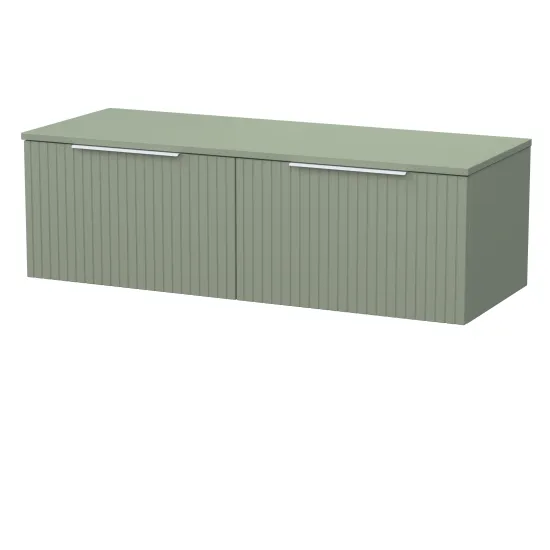 nuie Lux Flume 600mm Single Drawer Wall Hung Unit with Furniture Worktop - Fern Green