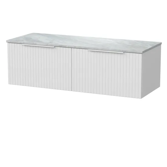 nuie Lux Flume 600mm Single Drawer Wall Hung Unit with Grey Marble Top - Matt White
