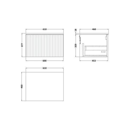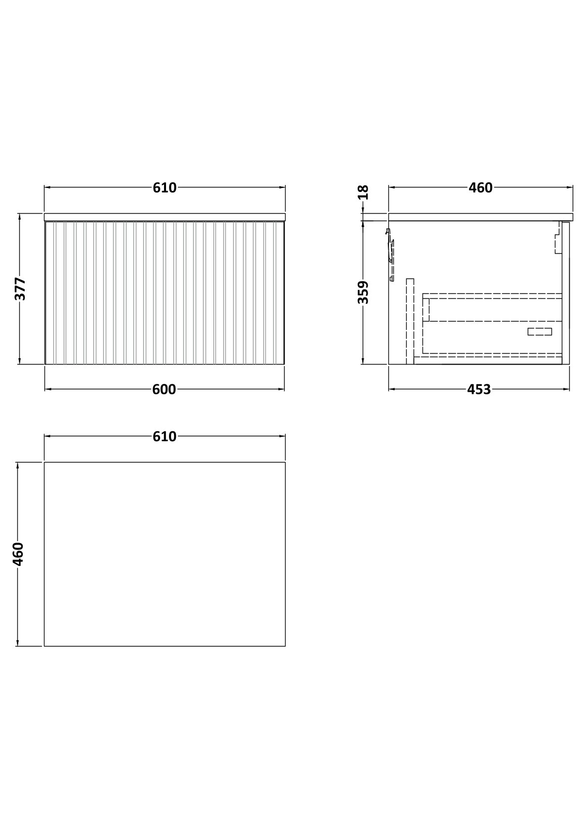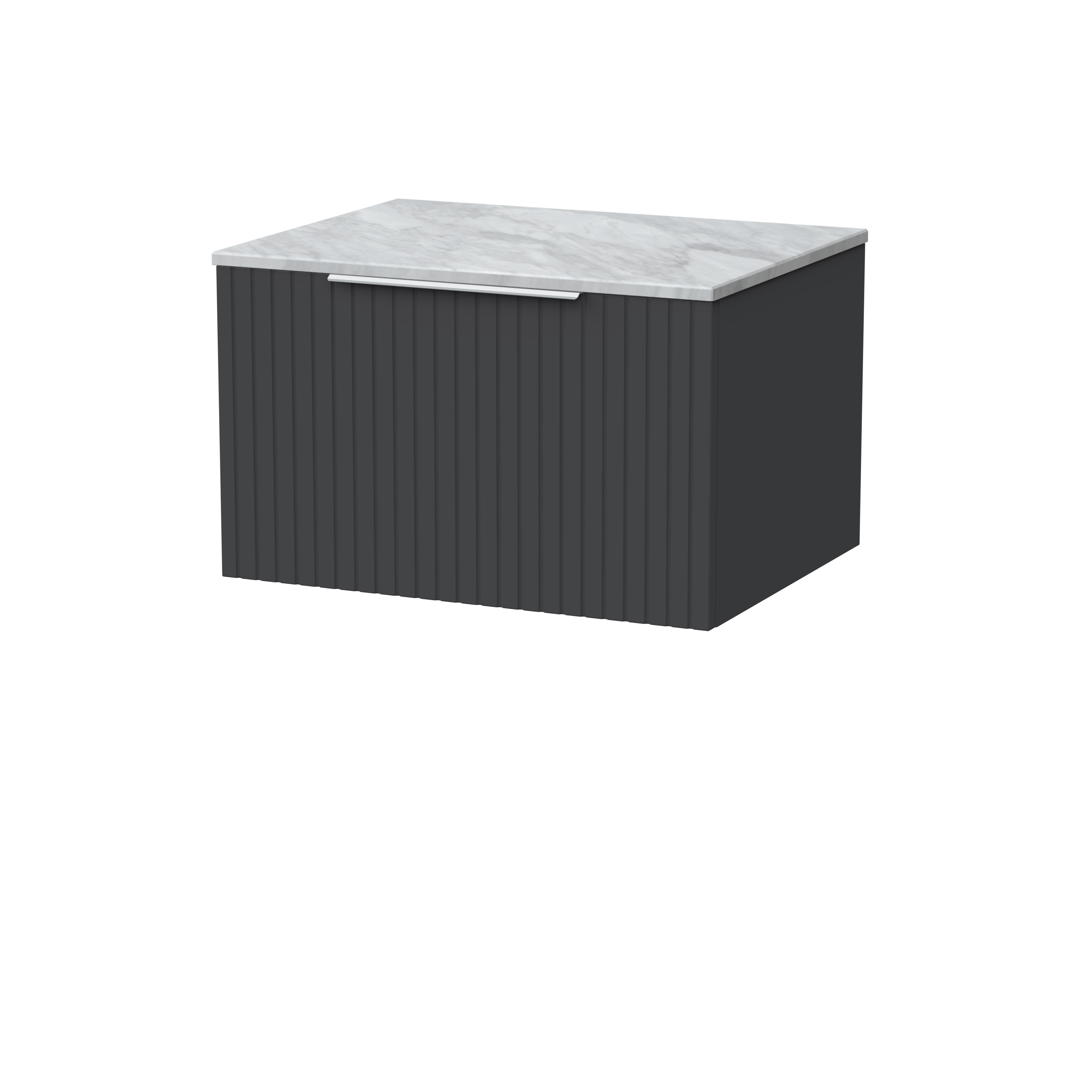 Flume 600mm Single Drawer Wall Hung Unit with Grey Marble Top