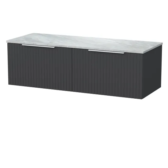 Flume 600mm Single Drawer Wall Hung Unit with Grey Marble Top