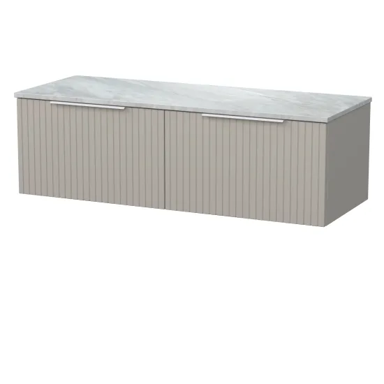 nuie Lux Flume 600mm Single Drawer Wall Hung Unit with Grey Marble Top - Pebble Grey