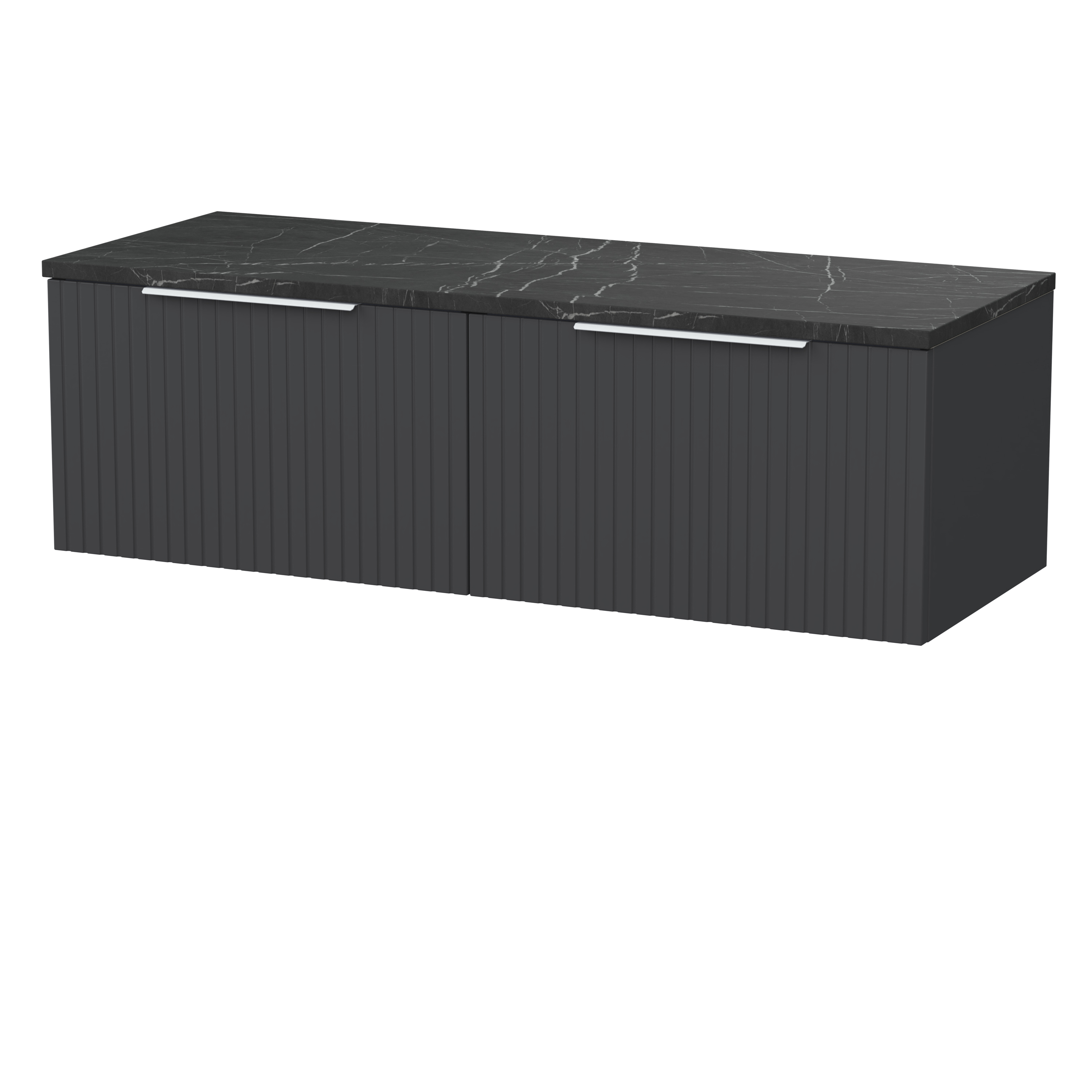 nuie Lux Flume 600mm Single Drawer Wall Hung Unit with Laminate Worktop - Soft Black