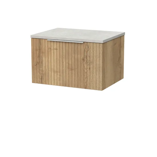 nuie Lux Flume 600mm Single Drawer Wall Hung Unit with Laminate Worktop - Autumn Oak