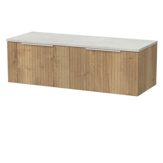 nuie Lux Flume 600mm Single Drawer Wall Hung Unit with Laminate Worktop - Autumn Oak