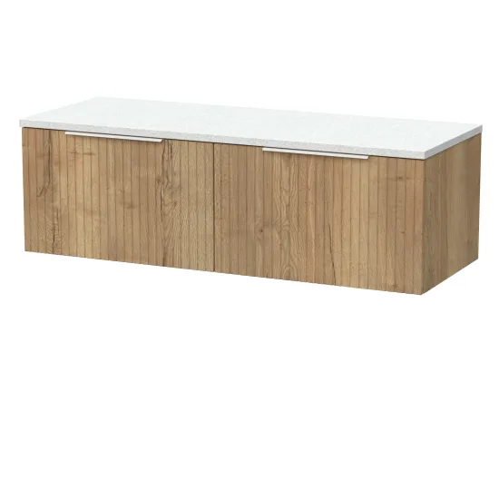 nuie Lux Flume 600mm Single Drawer Wall Hung Unit with Laminate Worktop - Autumn Oak