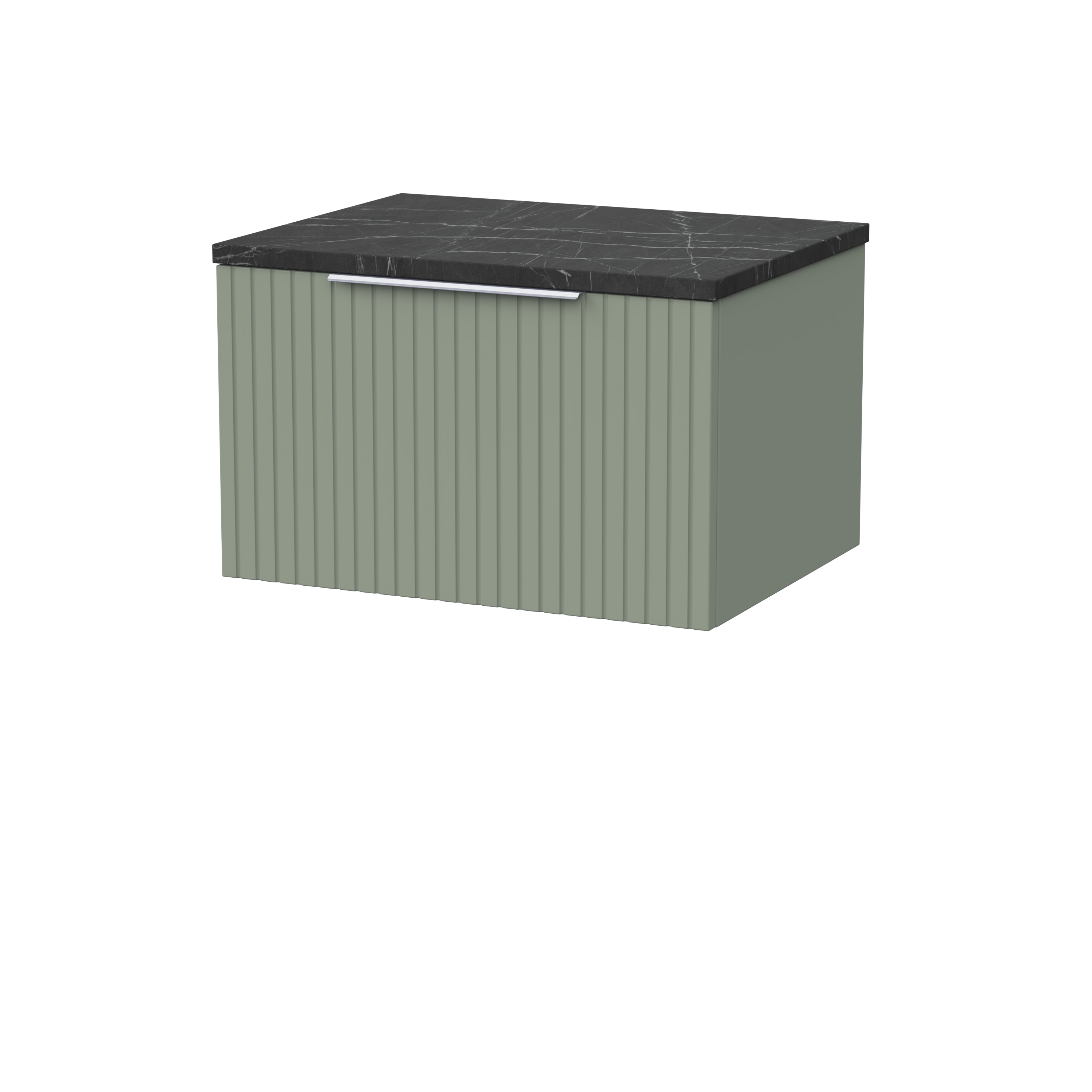 nuie Lux Flume 600mm Single Drawer Wall Hung Unit with Laminate Worktop - Fern Green