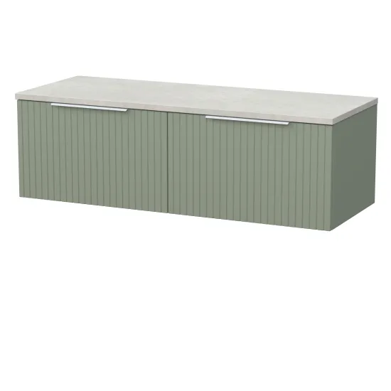 nuie Lux Flume 600mm Single Drawer Wall Hung Unit with Laminate Worktop - Fern Green