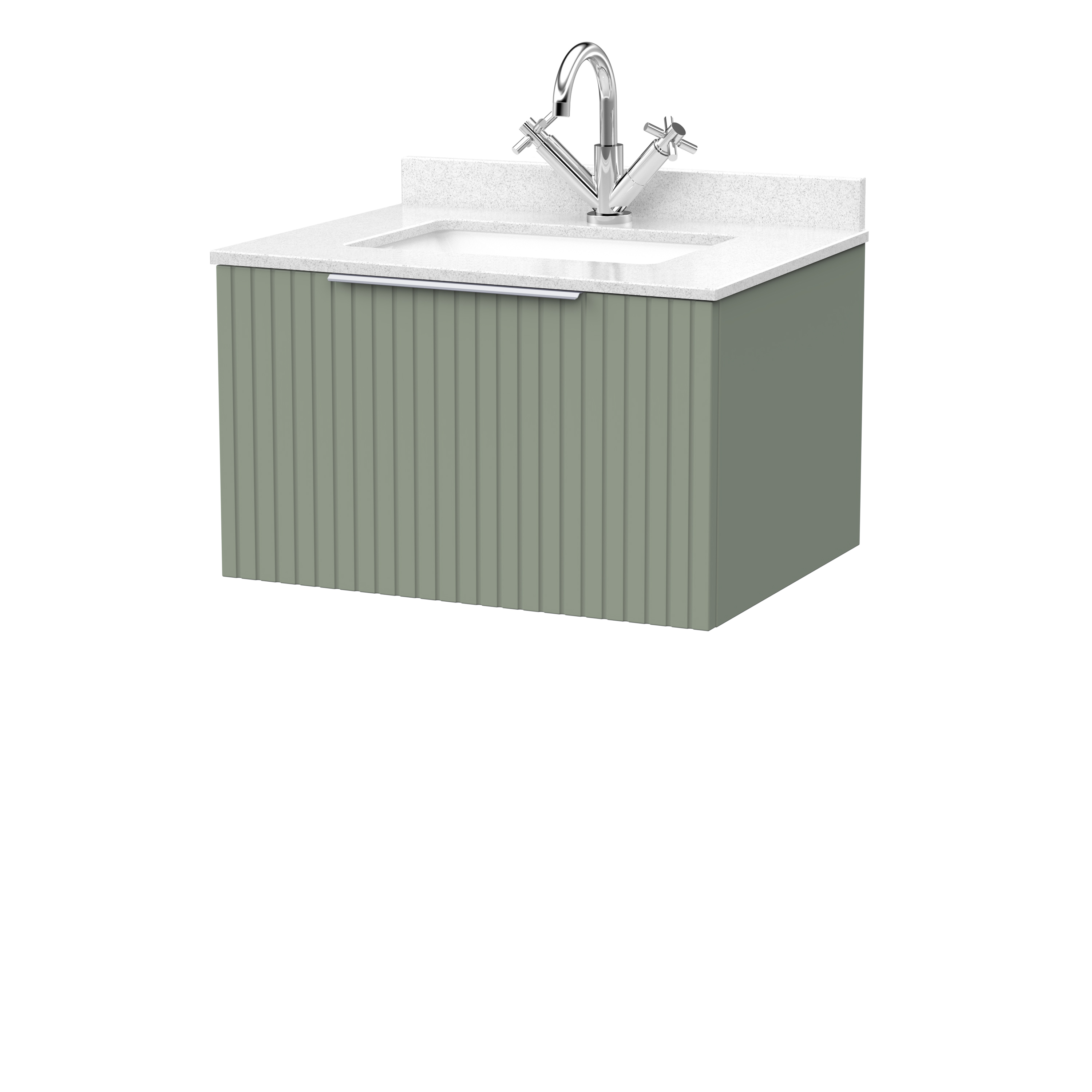 nuie Lux Flume 600mm Single Drawer Wall Hung Unit with Single Bowl Marble Top 1 Tap Hole in White - Fern Green
