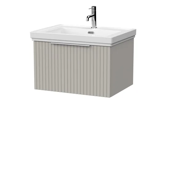 nuie Lux Flume 600mm Single Drawer Wall Hung Unit with Traditional Fireclay Basin - 1 Tap Hole - Pebble Grey
