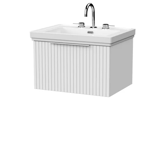 nuie Lux Flume 600mm Single Drawer Wall Hung Unit with Traditional Fireclay Basin - 3 Tap Holes - Matt White