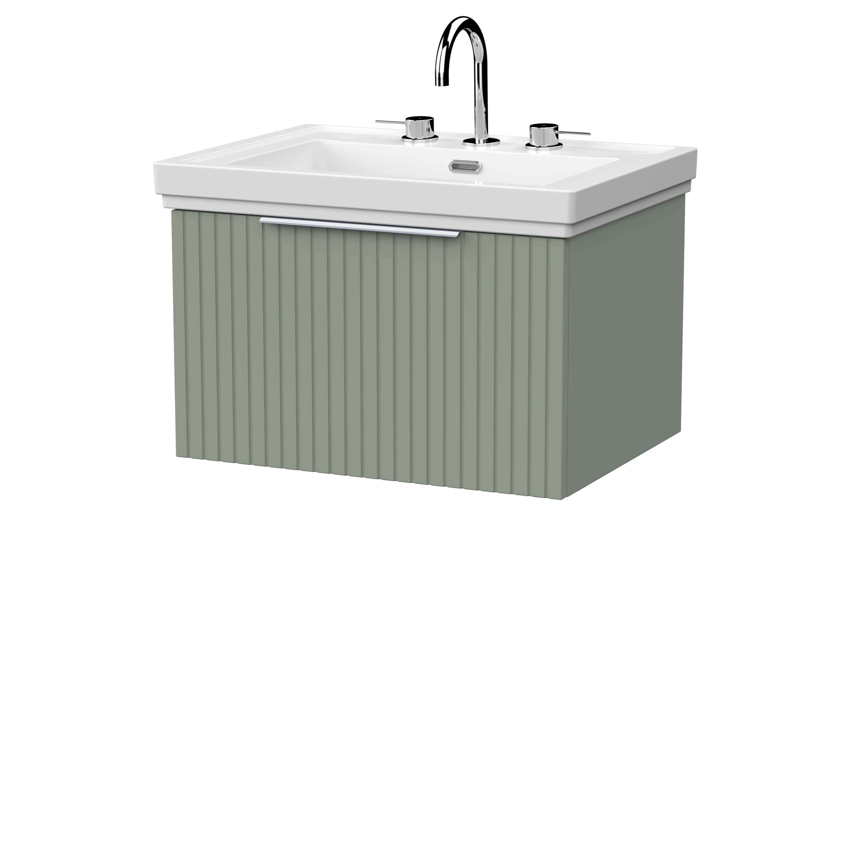 nuie Lux Flume 600mm Single Drawer Wall Hung Unit with Traditional Fireclay Basin - 3 Tap Holes - Fern Green