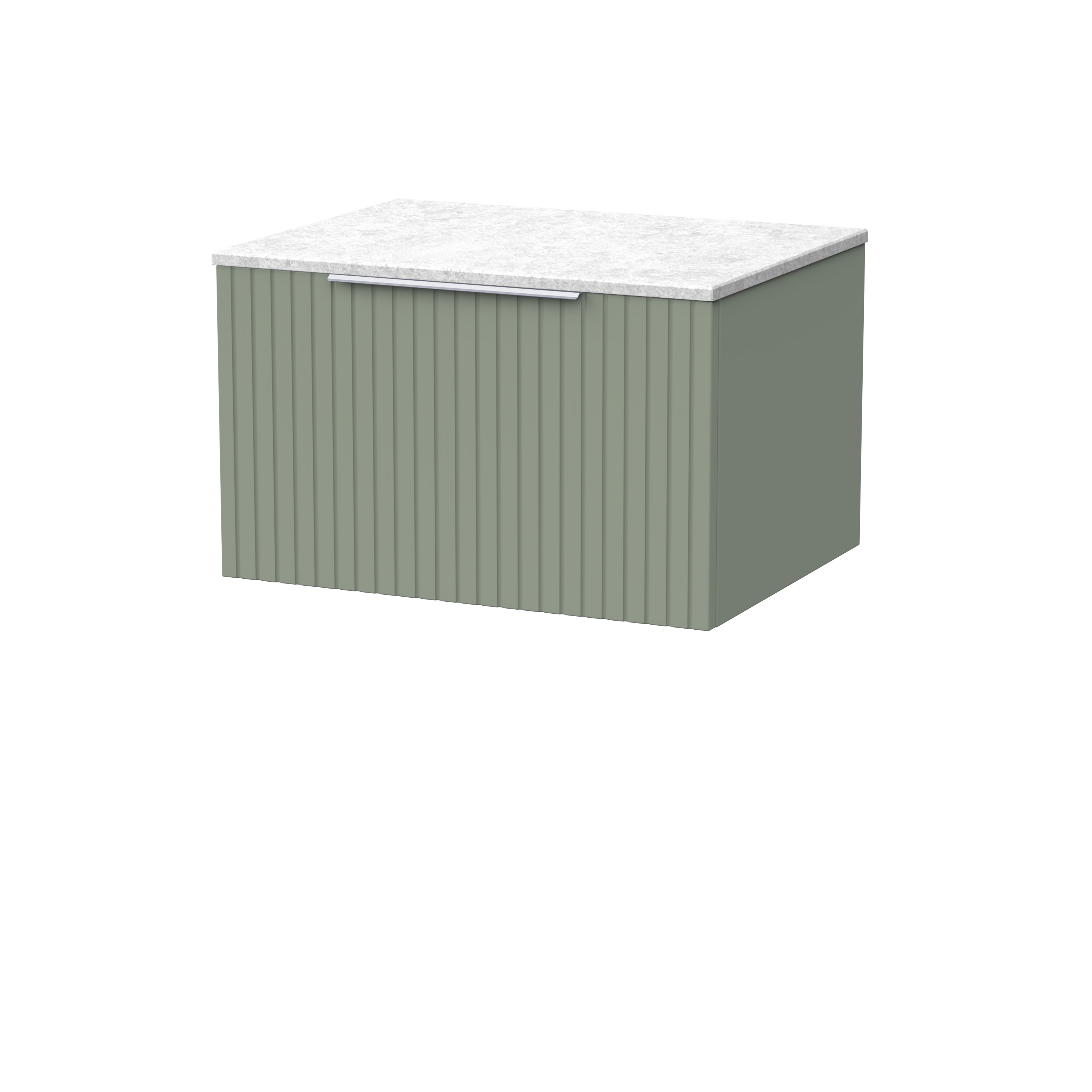 nuie Lux Flume 600mm Single Drawer Wall Hung Unit with White Marble Top - Fern Green
