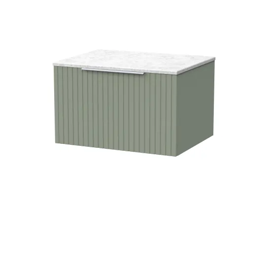 Flume 600mm Single Drawer Wall Hung Unit with White Marble Top