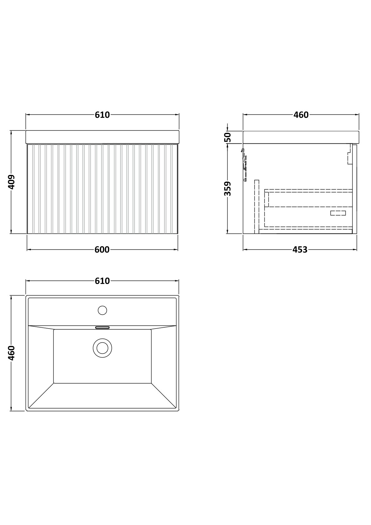 Flume 600mm Single Drawer Wall Hung Unit withThin-Edge Basin - 1 Tap Hole