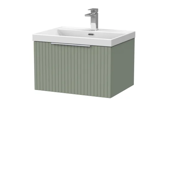 nuie Lux Flume 600mm Single Drawer Wall Hung Unit withThin-Edge Basin - 1 Tap Hole - Fern Green