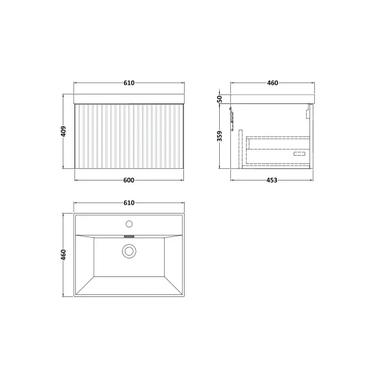 Flume 600mm Single Drawer Wall Hung Unit withThin-Edge Basin - 1 Tap Hole
